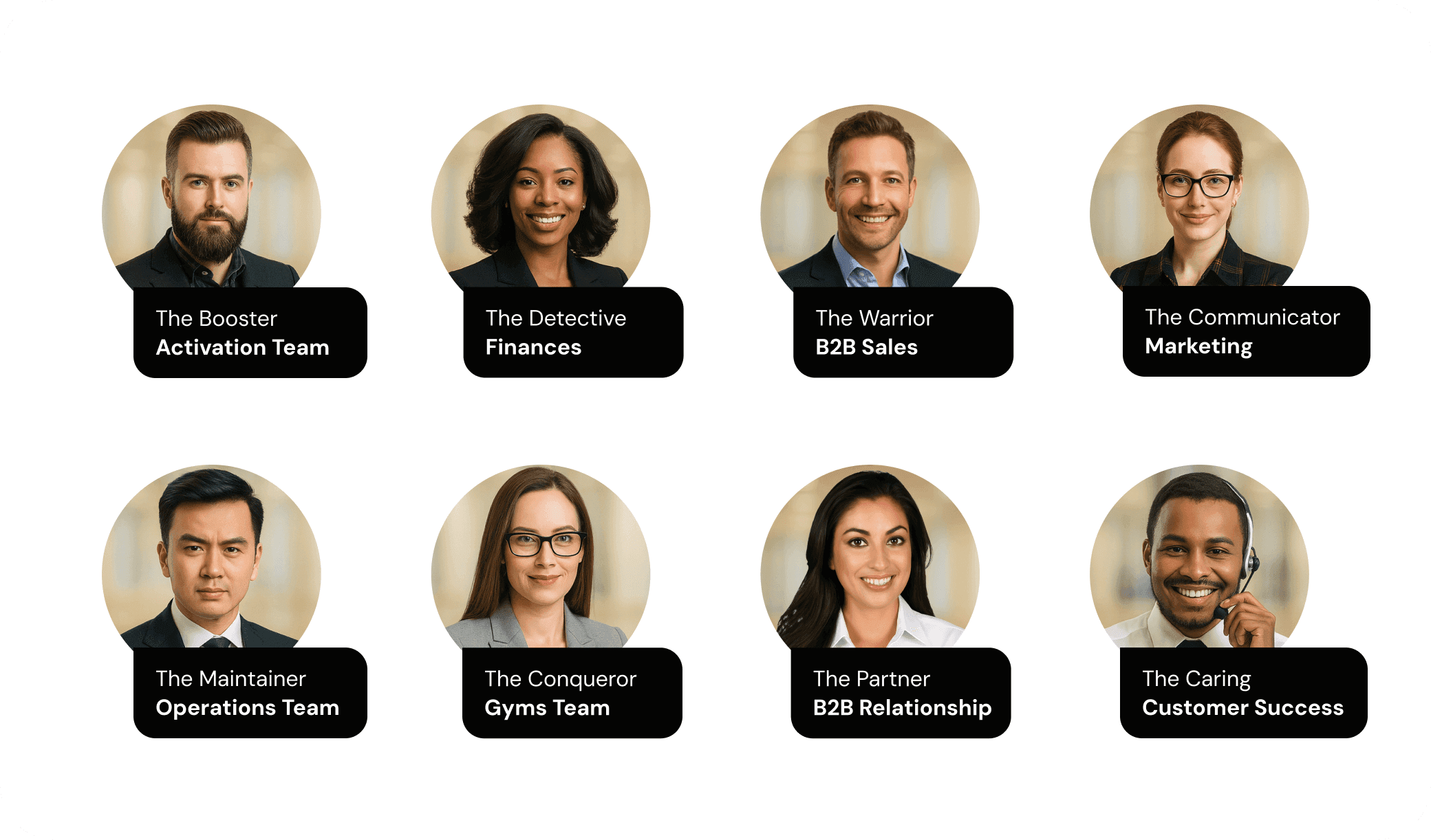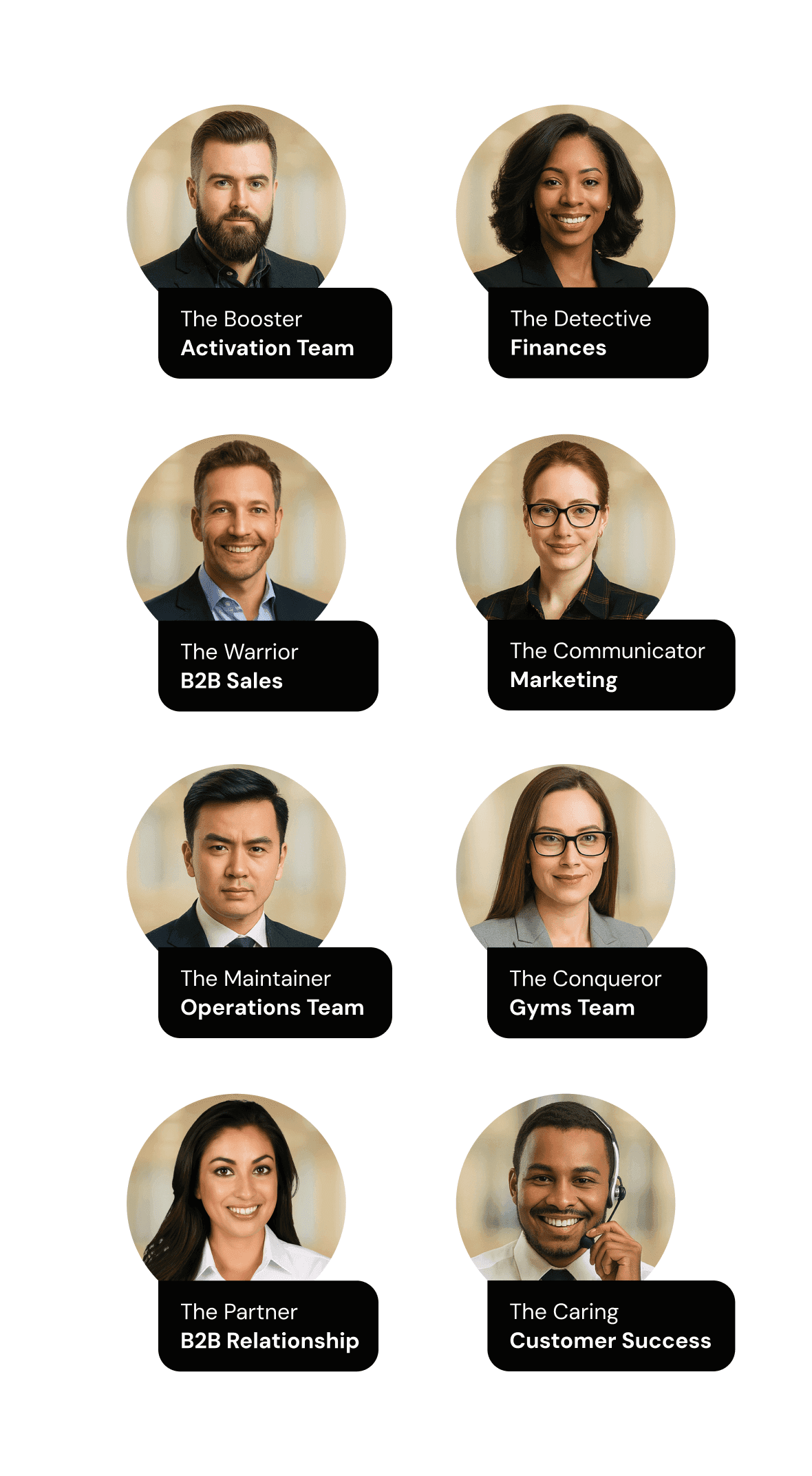 Personas identified by Researcher team and me during workshops and company internal mapping. Each persona is connected to one of the 8 internal areas at Gympass.